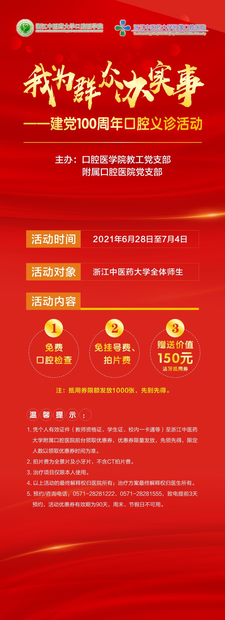 球盟会教工党支部、附属口腔医公司党支部开展“我为群众办实事 --建党100周年口腔义诊活动”的通知